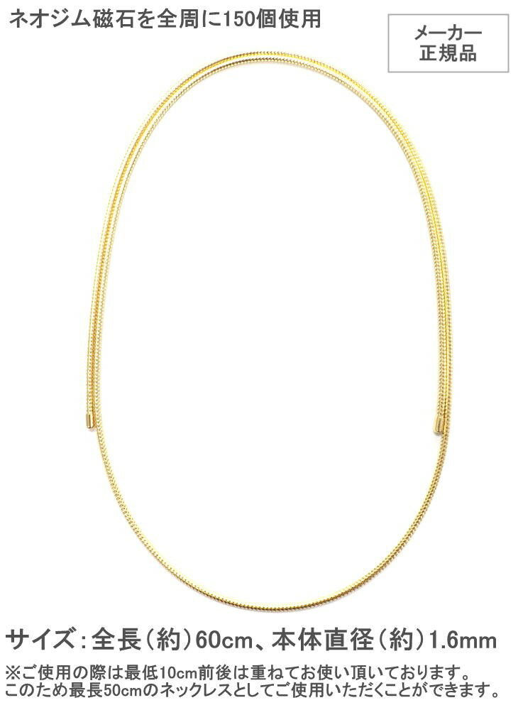 全長60cmの全周にネオジム磁石を150個使用したネックレス!   肩こり、腰痛改善のため、医療用健康器具として広く使用されているネオジム磁石は、世の中にある磁石の中で最も強力な磁石です。