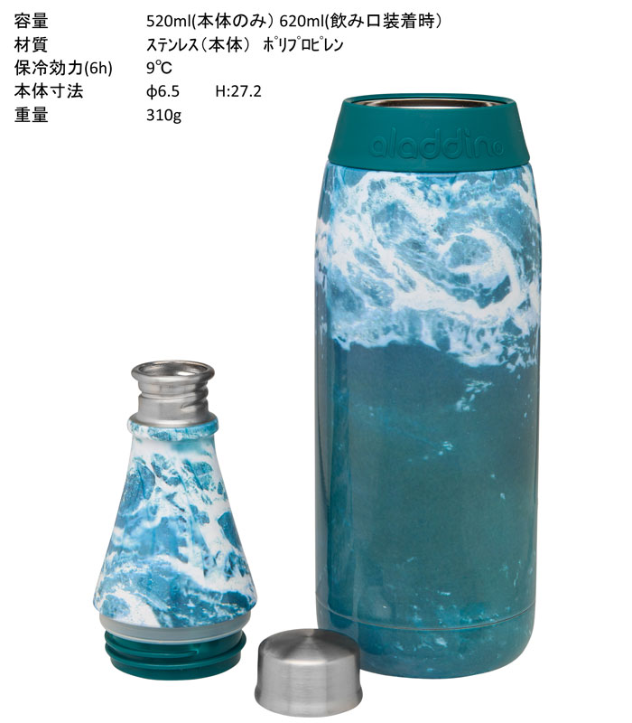 《全5色》aladdin フレスコクールボトル 620ml 【アラジン デザイン雑貨 キッチン雑貨 ドリンク ステンレスボトル 保冷水筒 魔法瓶 520ml 氷 アイス】