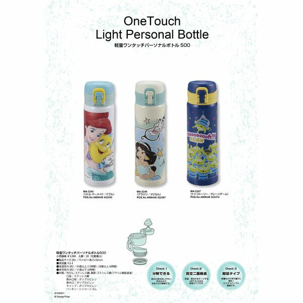パール金属 MA-2246 ディズニー 軽量ワンタッチパーソナルボトル500 アラジン/マジカル MA2246【キャンセル不可】