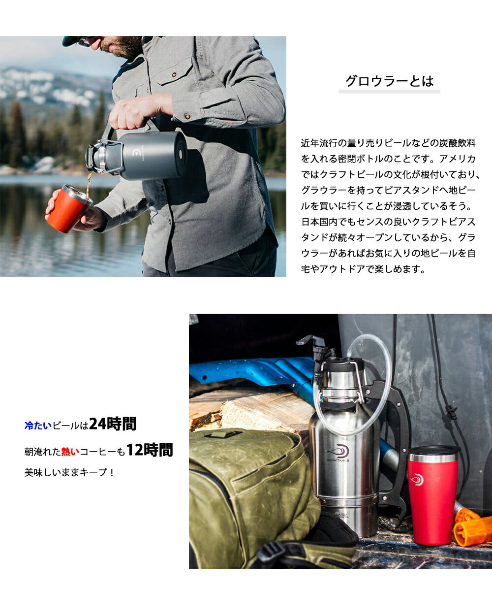 商品名 Growler 64oz 1.9L ブランド DrinkTanks Growlerは、クラフトビール用コンテナ需要の世界的な高まりに対応する為にアメリカ、オレゴン州で生まれました。