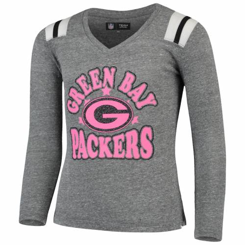 ニューエラ NEW ERA 緑 グリーン パッカーズ 子供用 ブイネック スリーブ Tシャツ 灰色 グレー グレイ 【 GREEN SLEEVE GRAY NEW ERA BAY PACKERS GIRLS YOUTH TOTAL TOUCHDOWN TRIBLEND VNECK LONG TSHIRT HEATHERED 】 キ